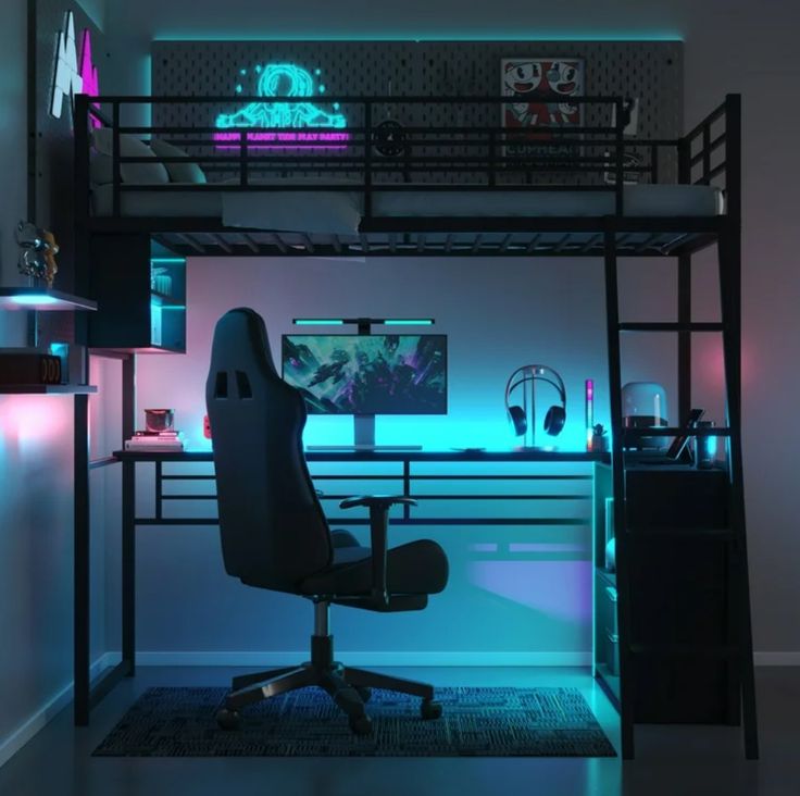 Loft bed adalah tempat tidur yang ditinggikan namun tanpa ranjang bawah, sehingga ruang di bawahnya bisa dimanfaatkan untuk berbagai fungsi termasuk area gaming. Gunakan meja berukuran sedang yang cukup untuk menaruh monitor, keyboard, mouse, dan headset.