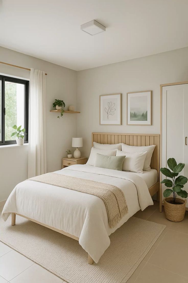 Tambahkan aksen warna pastel atau elemen kayu agar kamar terasa lebih hangat dan hidup tanpa menghilangkan kesan lembutnya.