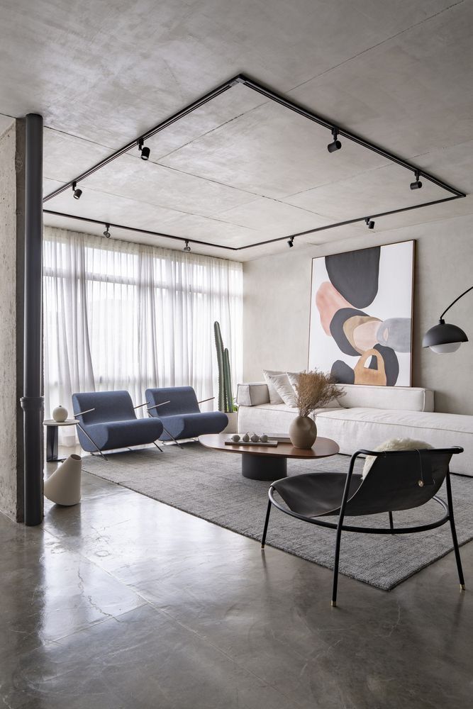 Abu-abu beton adalah warna paling identik dengan gaya industrial karena memberi kesan unfinished yang natural, seolah dinding masih dalam bentuk aslinya tanpa polesan.