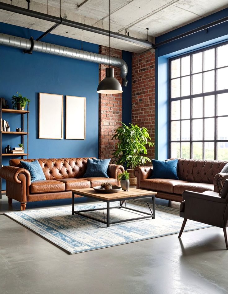 Biru navy menjadi pilihan favorit dalam desain industrial modern karena memberikan kesan elegan tanpa menghilangkan karakter industrial itu sendiri. Warna ini memiliki kedalaman yang kaya, sehingga bisa menjadi alternatif dari warna gelap seperti charcoal.