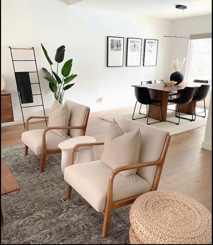 Model kursi bergaya Scandinavian dikenal dengan bentuknya yang simpel, warna netral, dan kaki kayu yang ramping. Cocok untuk kamu yang ingin tampilan ruang tamu yang terang, bersih, dan tetap cozy. Kursi ini biasanya menggunakan bahan kain lembut dengan bantalan empuk yang membuat nyaman saat duduk lama.