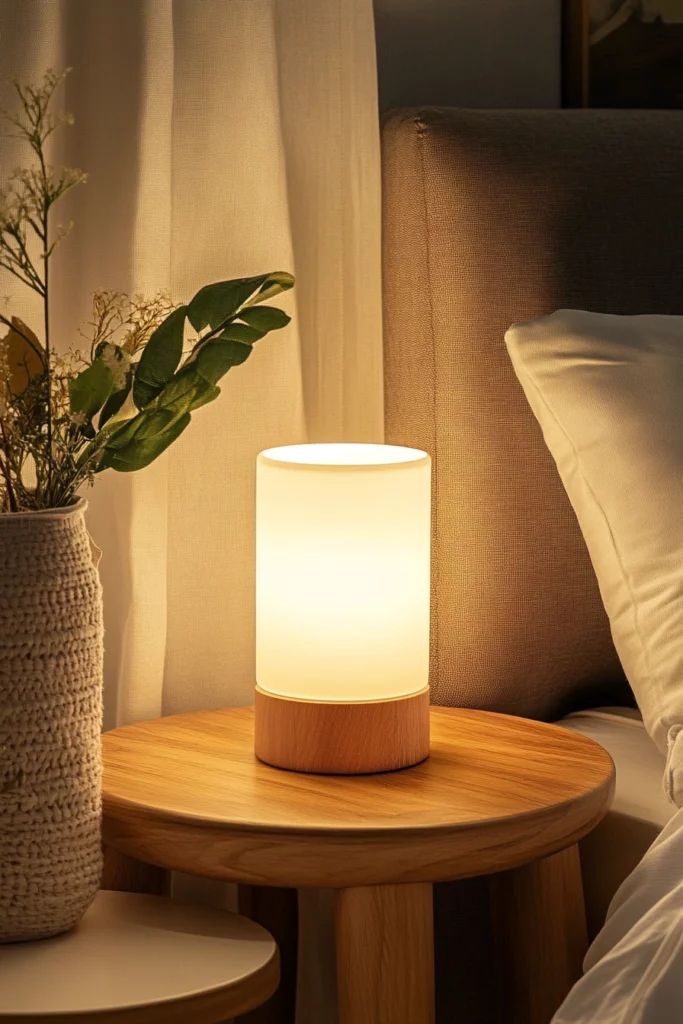 Pasang lampu tidur atau lampu meja dengan tingkat kecerahan yang bisa diatur.
